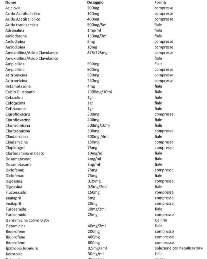 USEFUL DONATIONS: At the moment there are no drugs. They must be in excellent condition and with a maturity of more than 8 months, and can be taken to the storage center at the former Belluno Fire Brigade Station (current time: 9-12). Attached is the list of drugs.