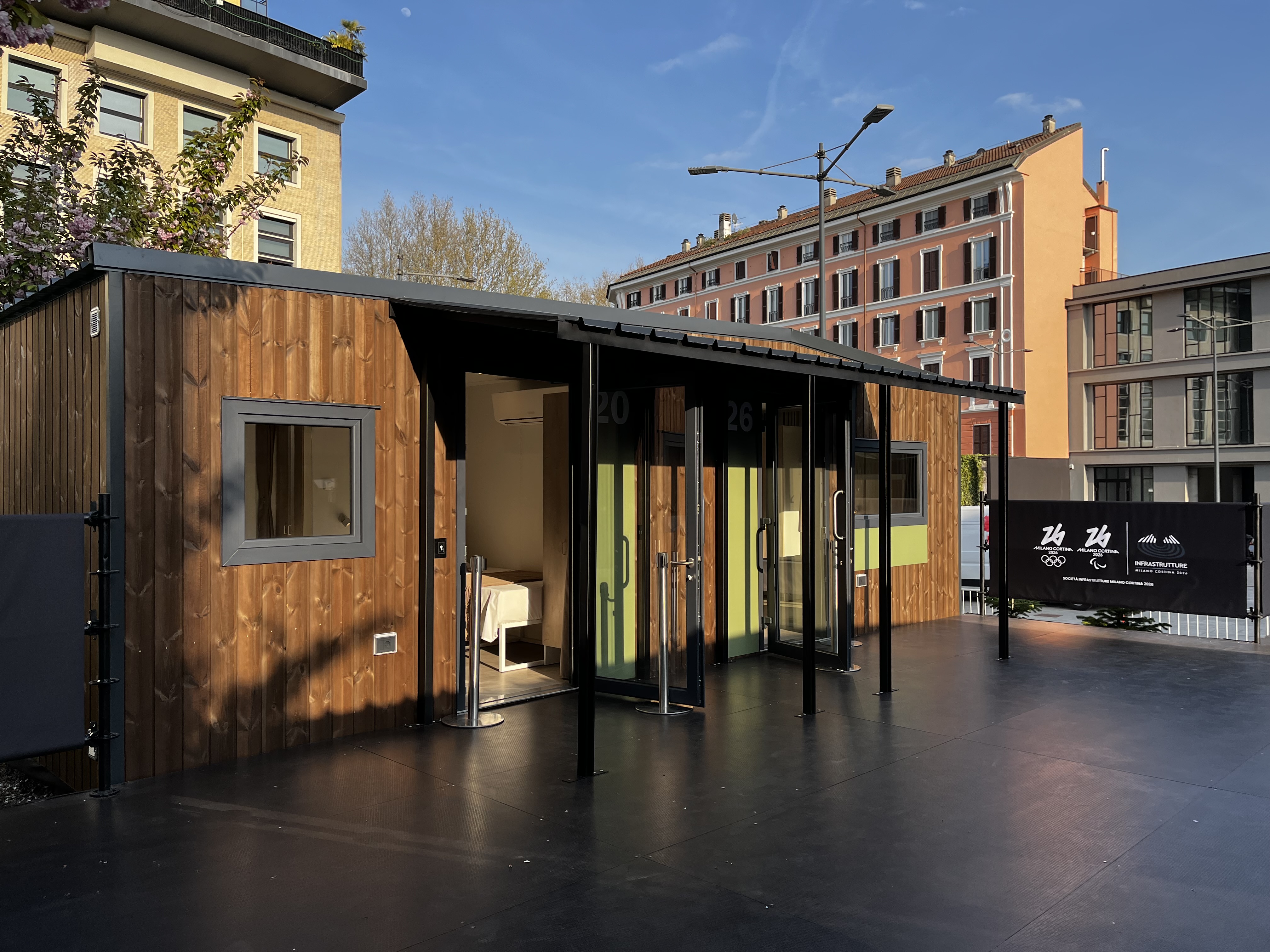 Le 377 casette che accoglieranno 1.400 atleti e accompagnatori rappresentano un esempio concreto di innovazione, sostenibilità e comfort. Progettate e realizzate in larga parte in Italia, sono pensate per offrire il massimo in termini di funzionalità, accessibilità e benessere. Ogni unità è dotata di due stanze indipendenti, ciascuna con due letti e un bagno. Gli arredi sono ergonomici, con climatizzatore, sanitari, armadi e sistemi di domotica. Il 50% delle strutture sarà accessibile a tutti.